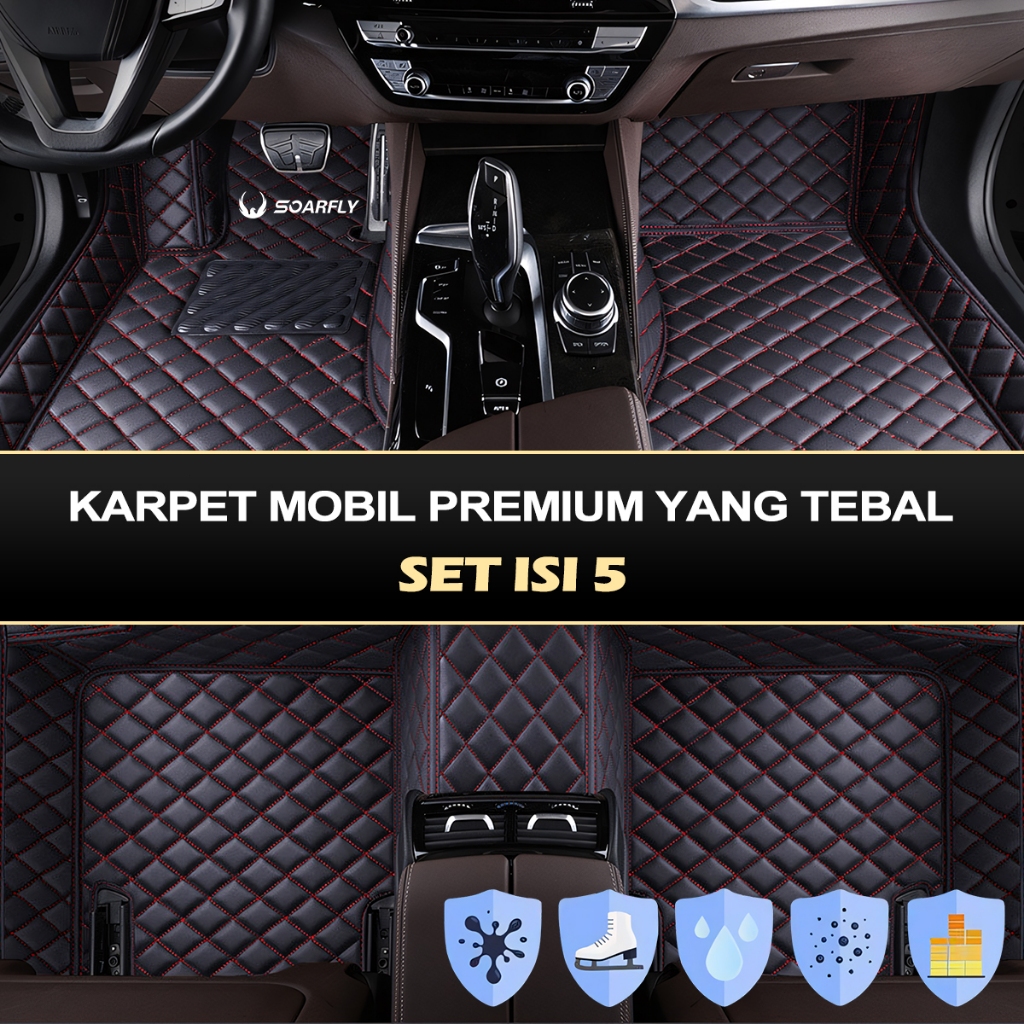 karpet mobil SOARFLY Universal Car Mats Leather 5 Pcs Karpet Mobil universal Kulit Waterproof Premium terlaris