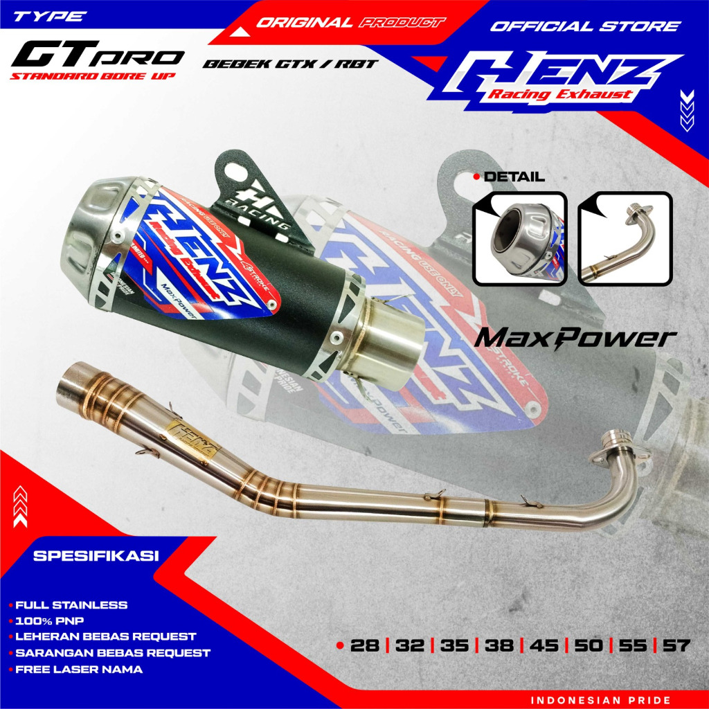 Knalpot GTX 130cc GT-pro stenlis/black coating Henz racing Exhaust
