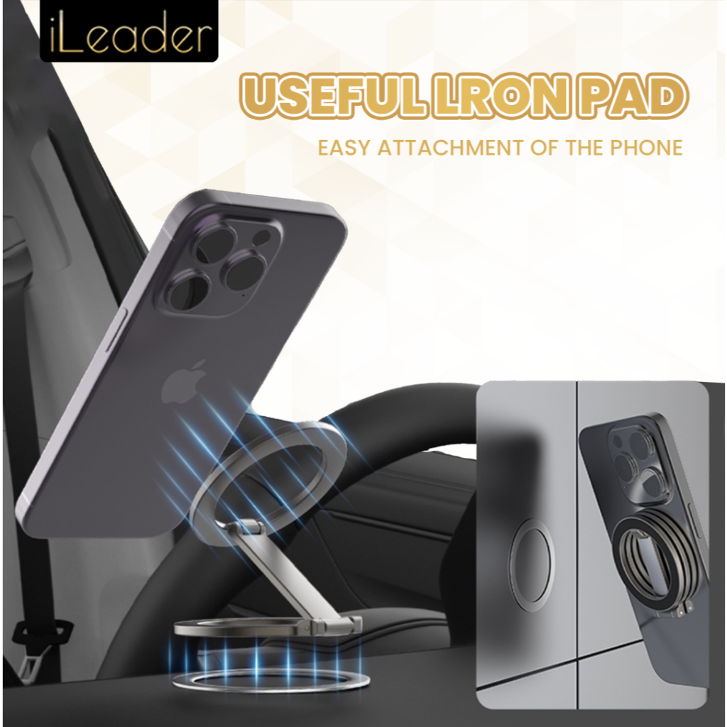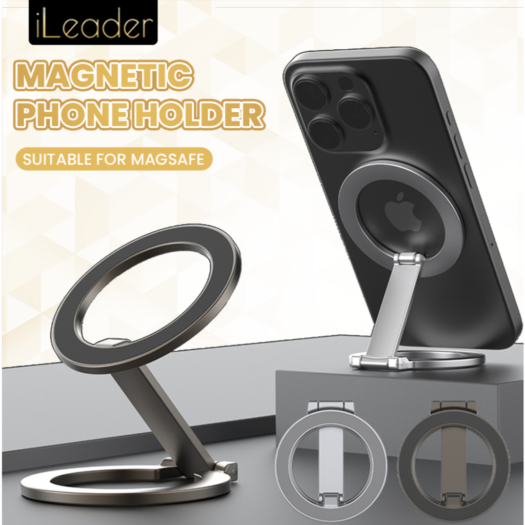 iLeader Dudukan HP Magsafe - Magnetik Ganda Ring Dudukan Meja Logam Penuh Universal untuk iPhone