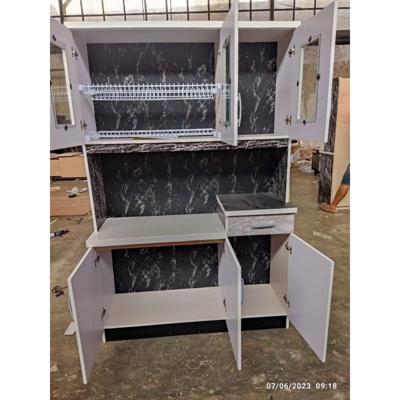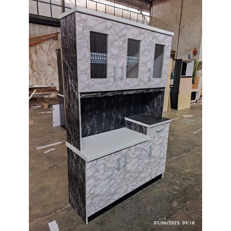 MS - Lemari Sayur Lemari Dapur 3 Pintu Motif Marmer Bahan Multriplek AWET KUAT KOKOH BANDUNG CIMAHI Only KAYU