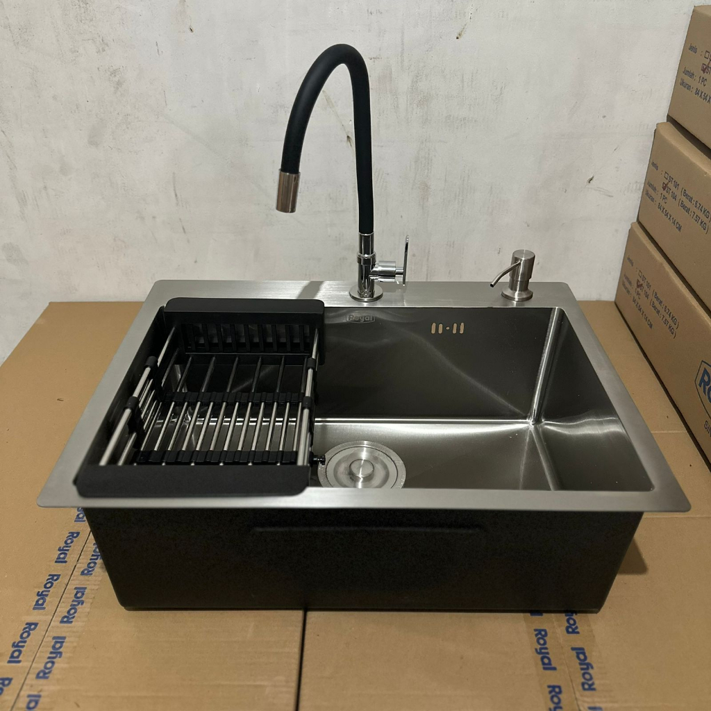 WASTAFEL CUCI PIRING SET STAINLESS ROYAL KITCHEN SINK CONTEMPO UNO BAK CUCI PIRING STAINLESS 60 X 45 CM + DENGAN KERAN