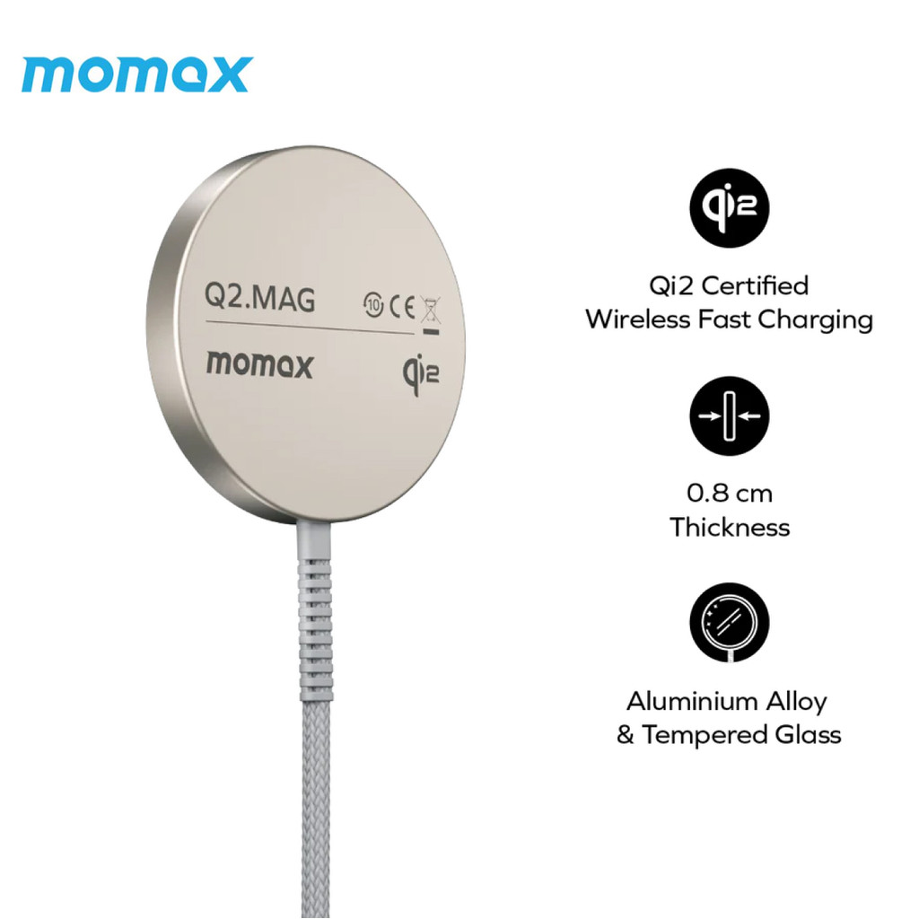 Wireless Charger Magsafe Portable Pad 15W for iPhone iPad iWatch MOMAX Q2.Mag Qi2 Fast Charging