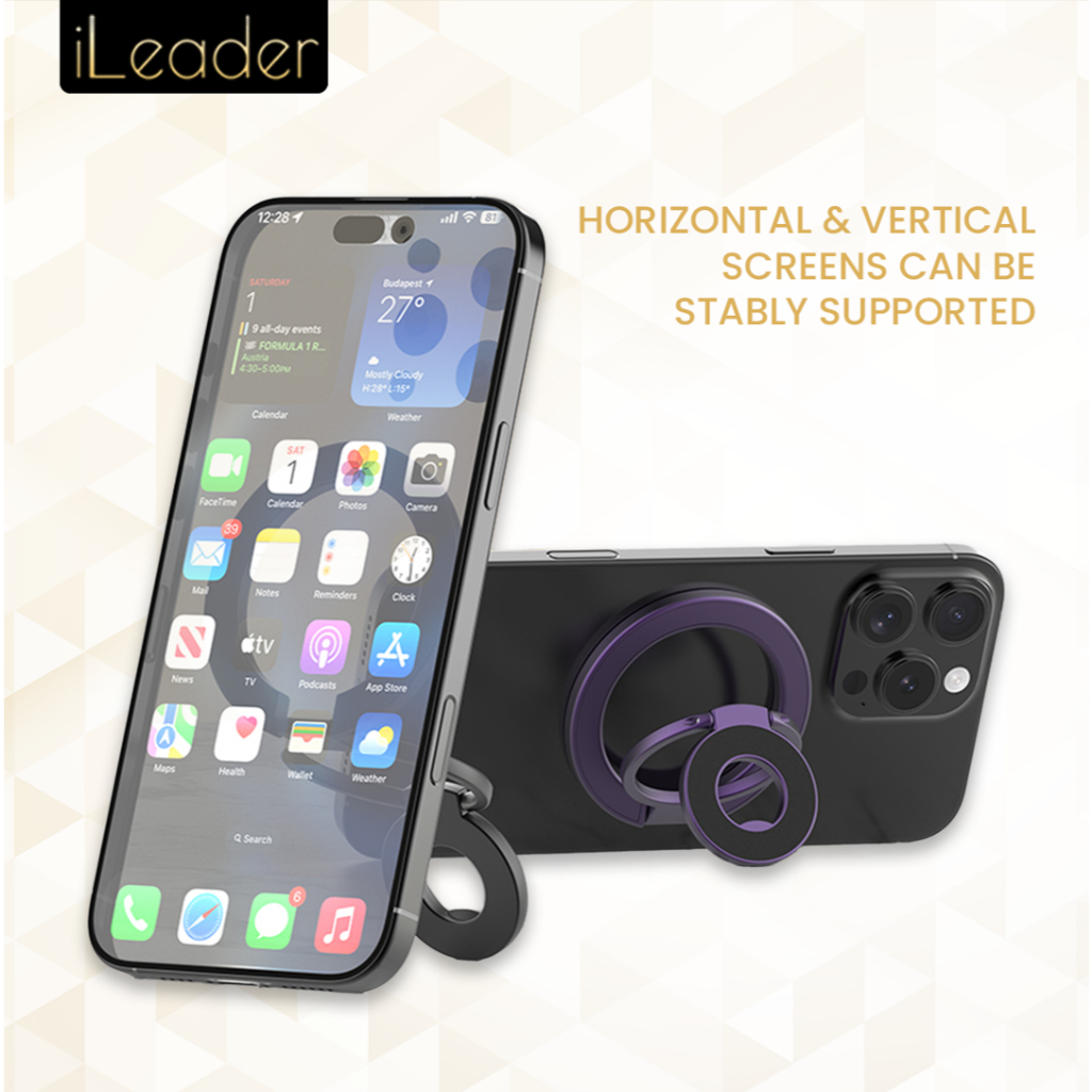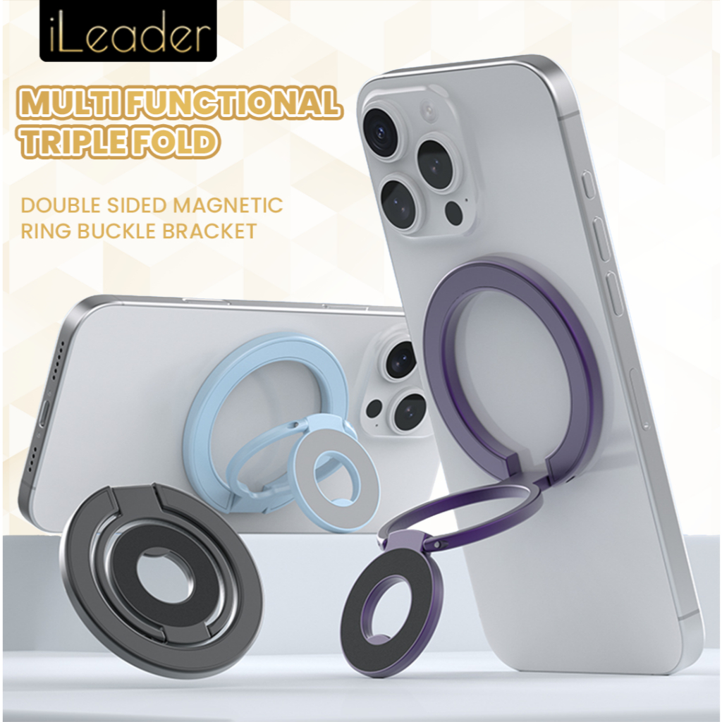 iLeader Dudukan HP Cincin Ganda Magsafe - Magnet Premium Kuat Lipat Z Dudukan Meja Multifungsi untuk iPhone