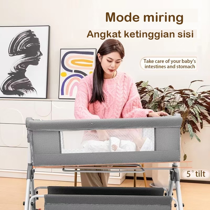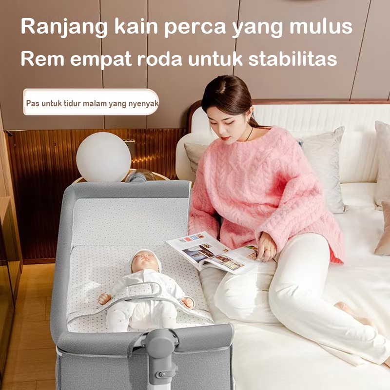 [Tinggi dapat disesuaikan]Tempat tidur Bayi Box Bayi Kursi goyang bayi lipat multi-fungsi Portabel Tambal sulam kasur ba