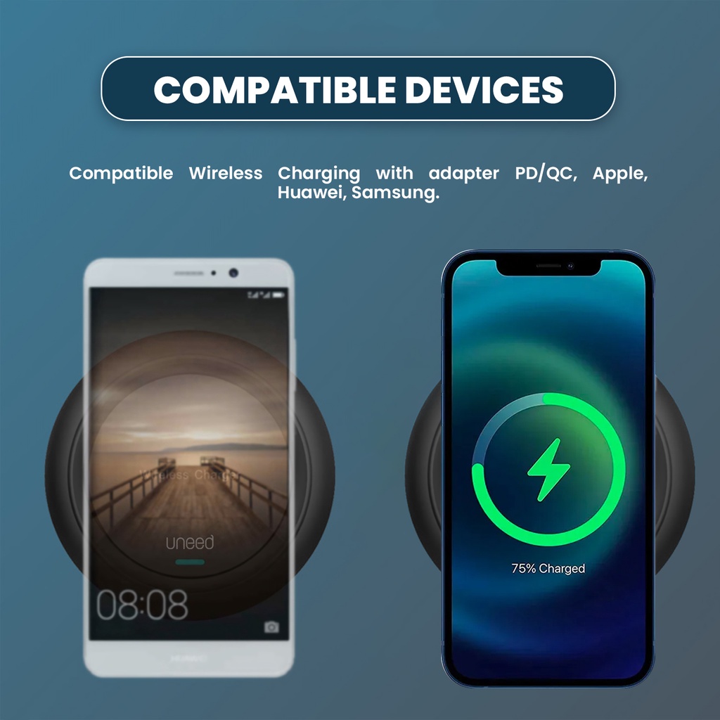 UNEED Qi Wireless Charger 15W Fast Charging Pad with Type C - UWA252