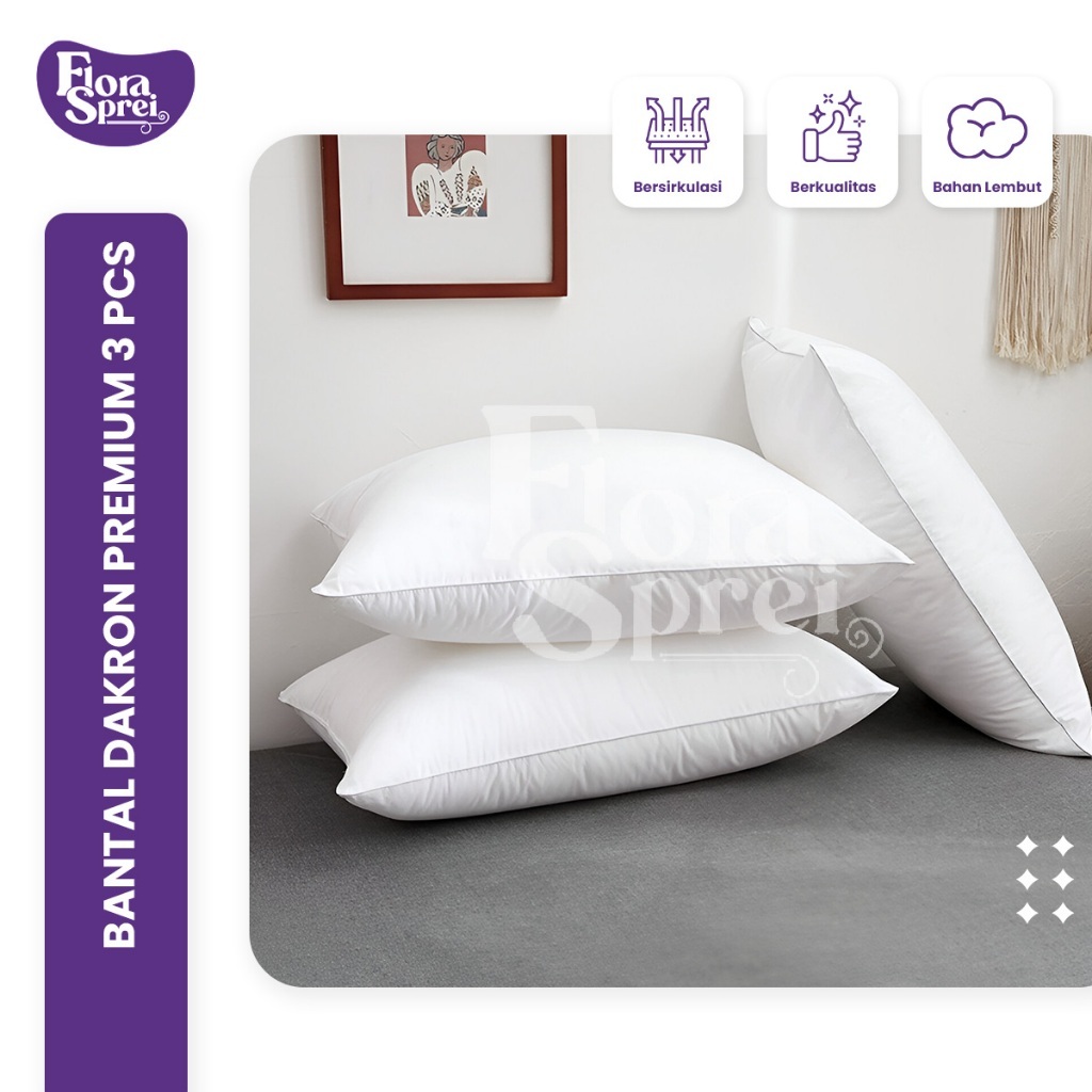 FLORA 1-5 PCS Bantal Dacron 100% Uk 70×43 Bantal Tidur Nyaman Anti Alergi Lembut Awet & Bisa Dicuci