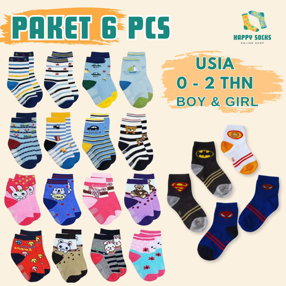 Paket 6 Pasang Kaos Kaki Anak Bayi Balita Motif Karakter Terbaru Kekinian Laki Laki Perempuan