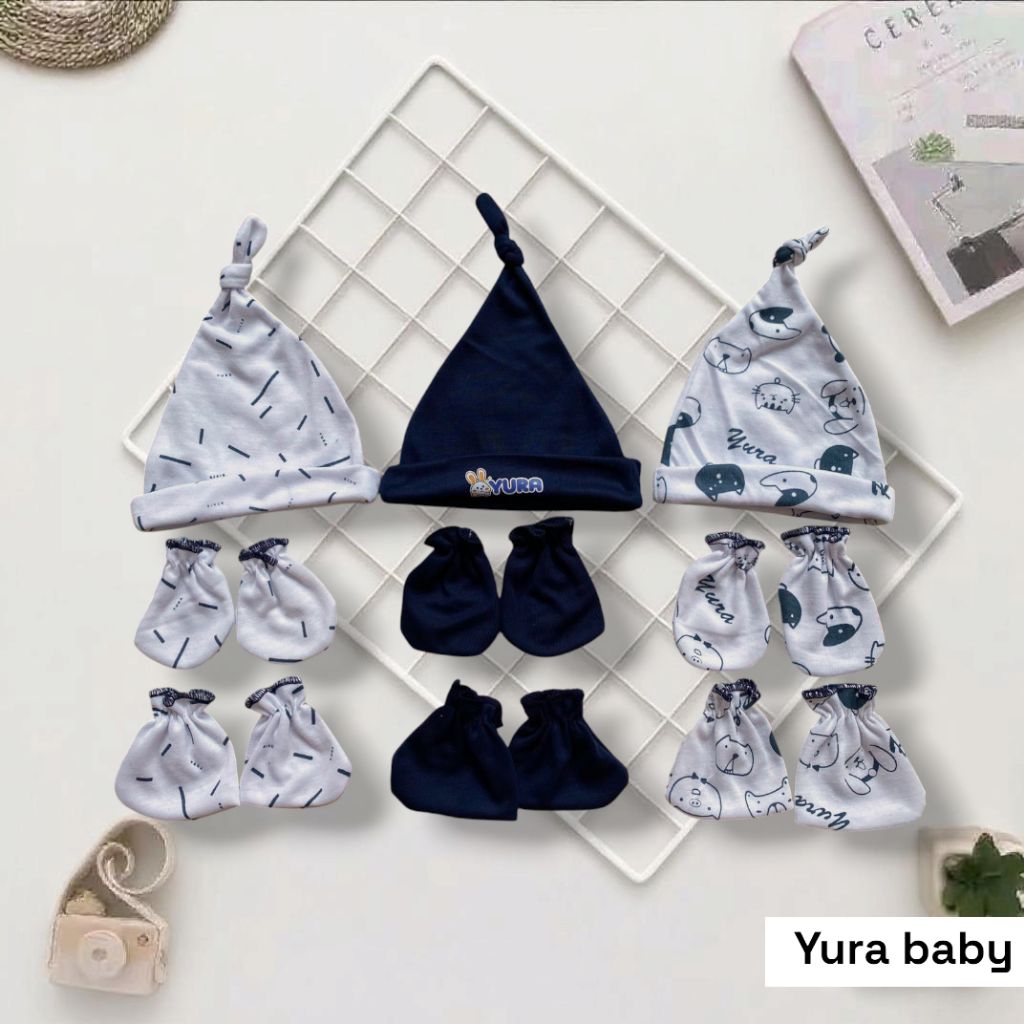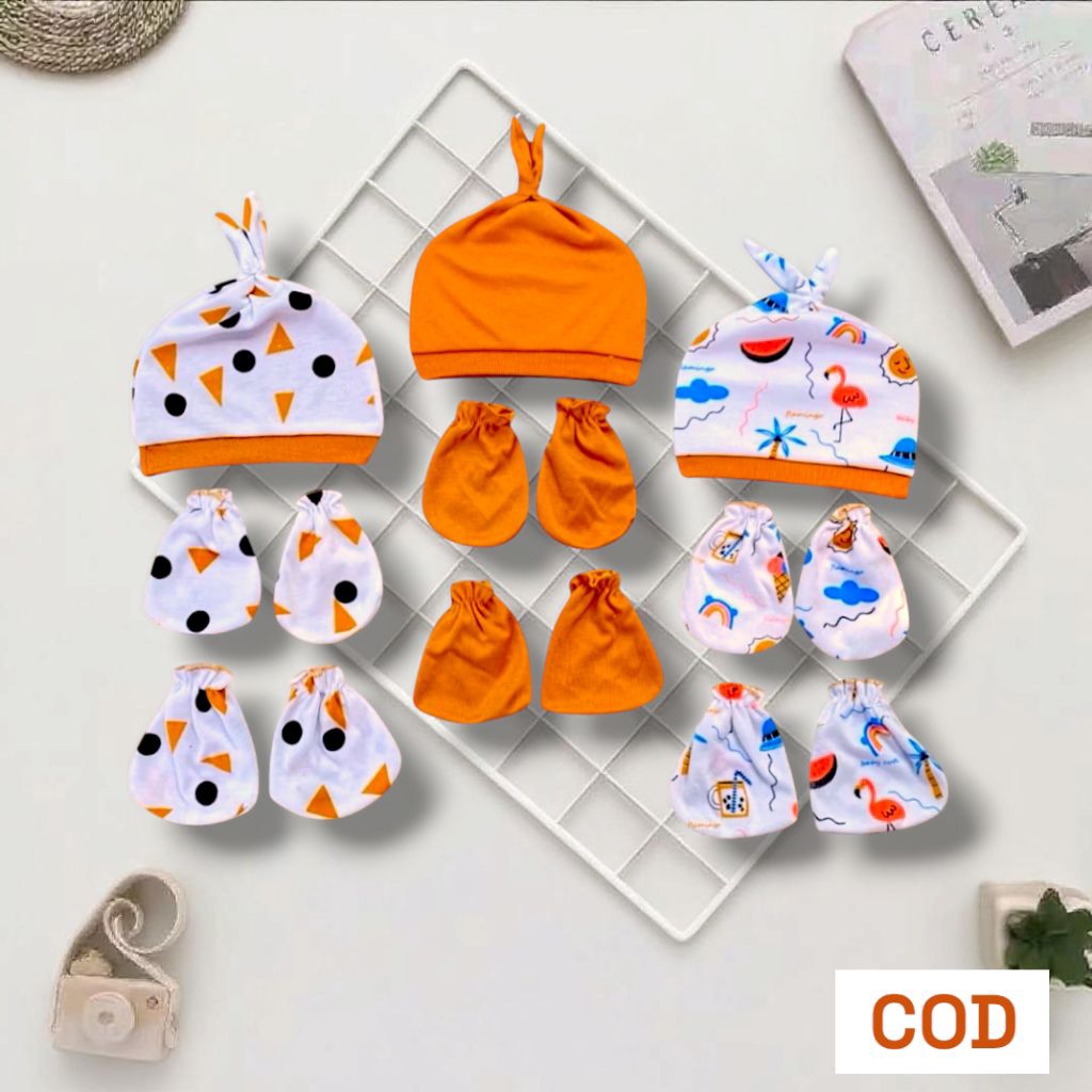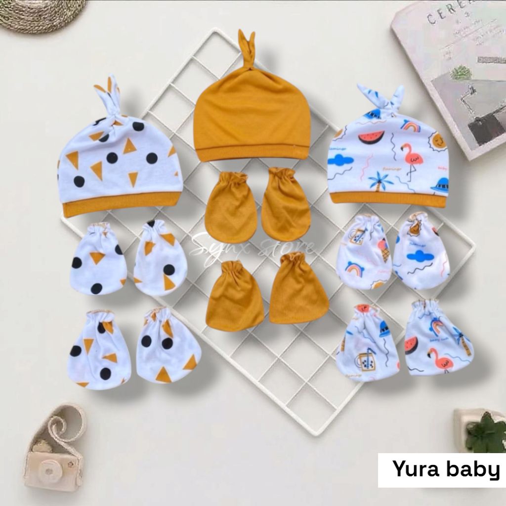 3 Set Topi Kupluk Sarung Tangan Dan Sarung Kaki Bayi Newborn Motif Terbaru