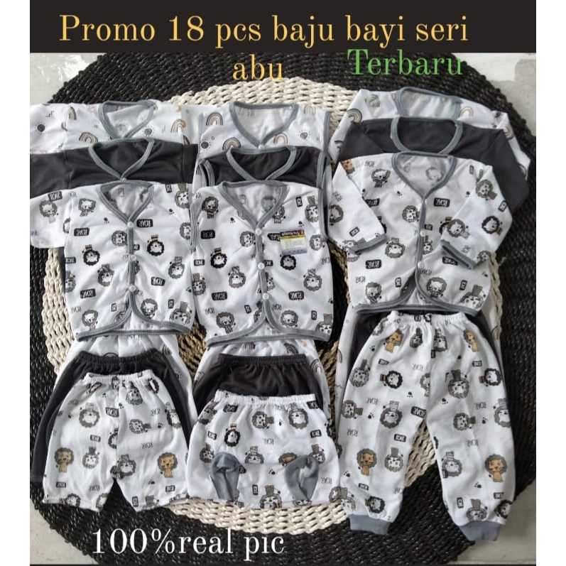 set pakaian bayi lengkap isi 30 pcs plus bonus 3 topi/18 pcs +topiset/18pcs seri abu+kacamata jemur
