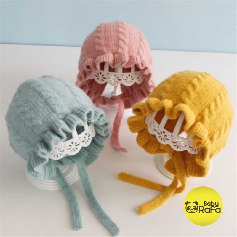 Topi Kupluk Bayi Bonet Bonnet Ruffle hat baby girl perempuan Rajut / Topi Bonnet Baby Girl Premium