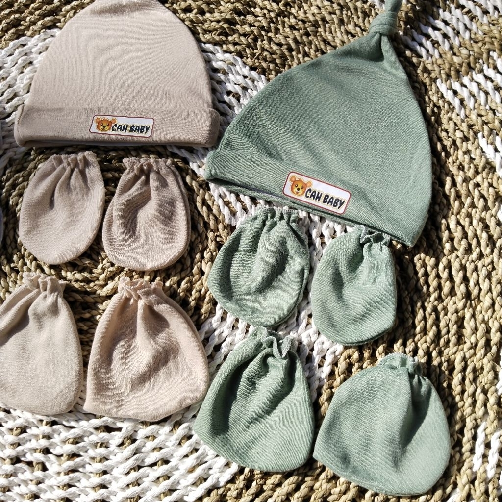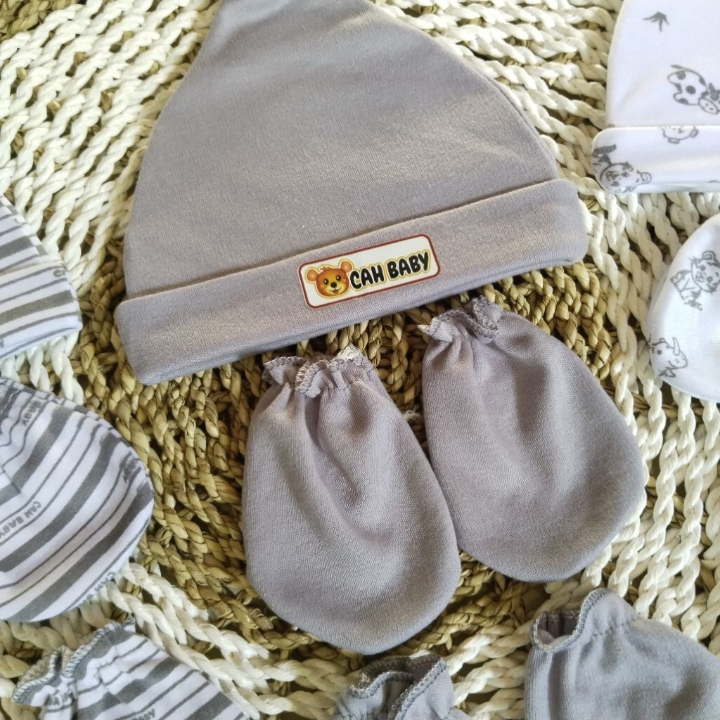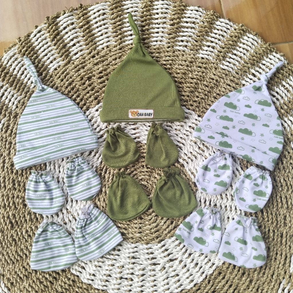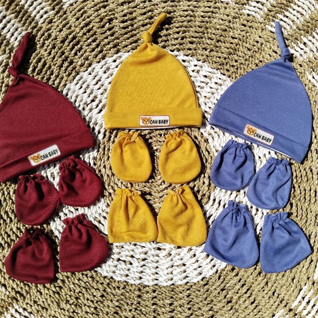 3 IN 1 / 3 Set Topi Bayi Baru Lahir Sartapluk Sarung Tangan Kaki Bayi Newborn Terbaru