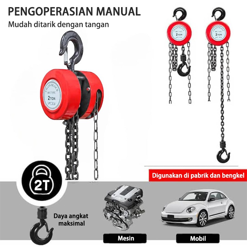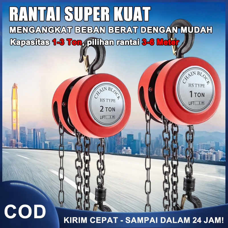 CHAIN BLOCK MANUAL 1TON/2TON/3TON - DEREK RANTAI ANGKAT BEBAN BERAT! (Tinggi 3M/6M) - KUAT & TAHAN LAMA