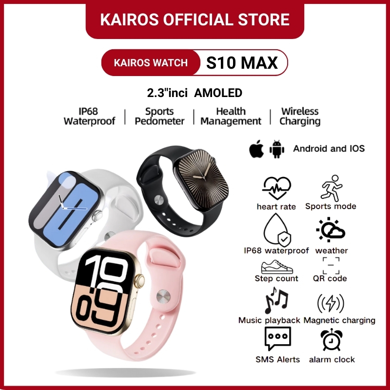 Kairos SmartWatch Series S10 Max Original with 2.3" HD AMOLED Display GPS NFC Waterproof Bluetooth Call wireless chargin