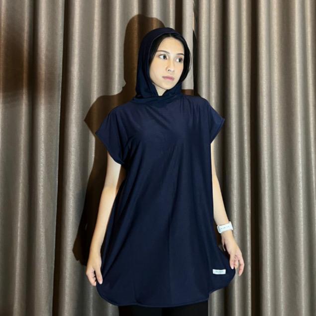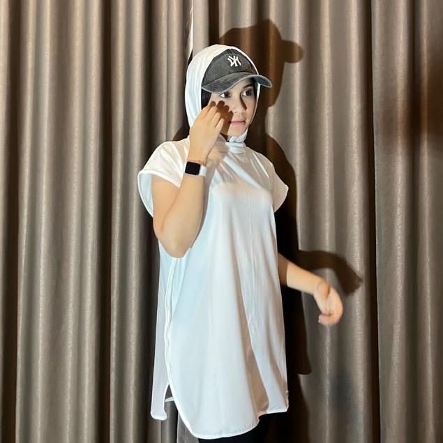 HIJAB ROMPI SPORTY Hoodie Syar'i / Jilbab Senam Sporty / Jilbab Instan / Baju Olahraga Muslim Panjang - HITAM ONE SIZE