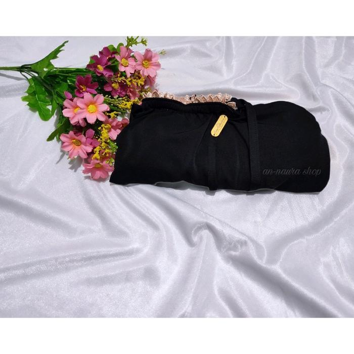 Jilbab kerut renda terbaru / bergo kerut / kerudung jersey renda / hijab instan kerut viral - hitam