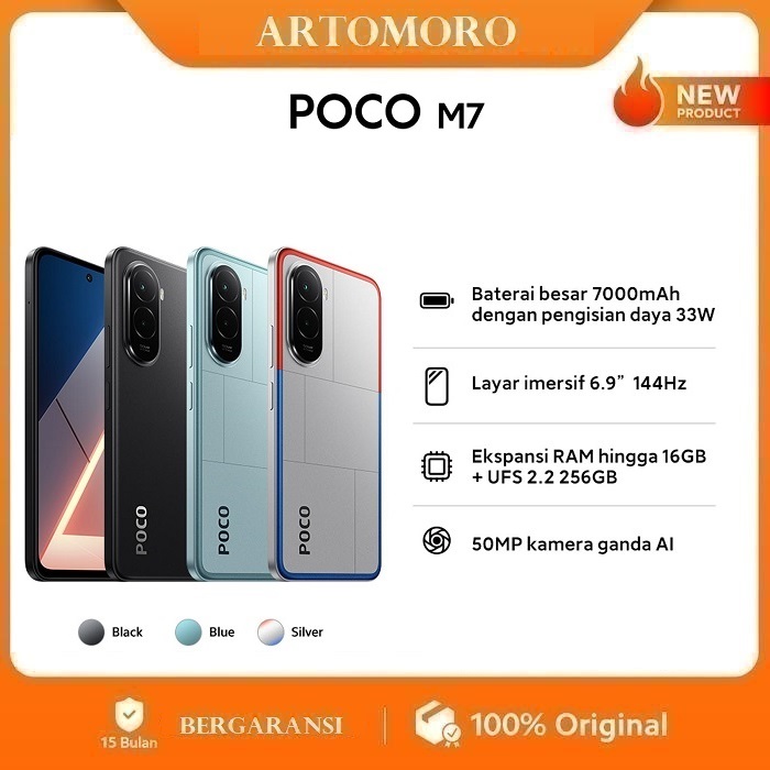 POCO M7 (8GB/256GB) Baterai besar 7000mAh dengan pengisian daya 33W