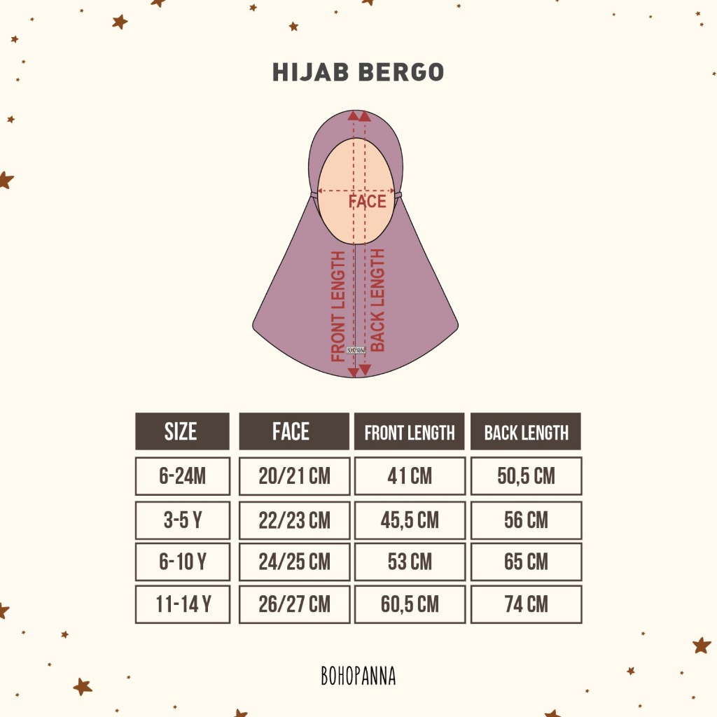 Bohopanna Hijab Bergo 0-14 Tahun Hijab Instant Tali Anak Perempuan / Pakaian Lebaran / Raya / Muslim CBKS