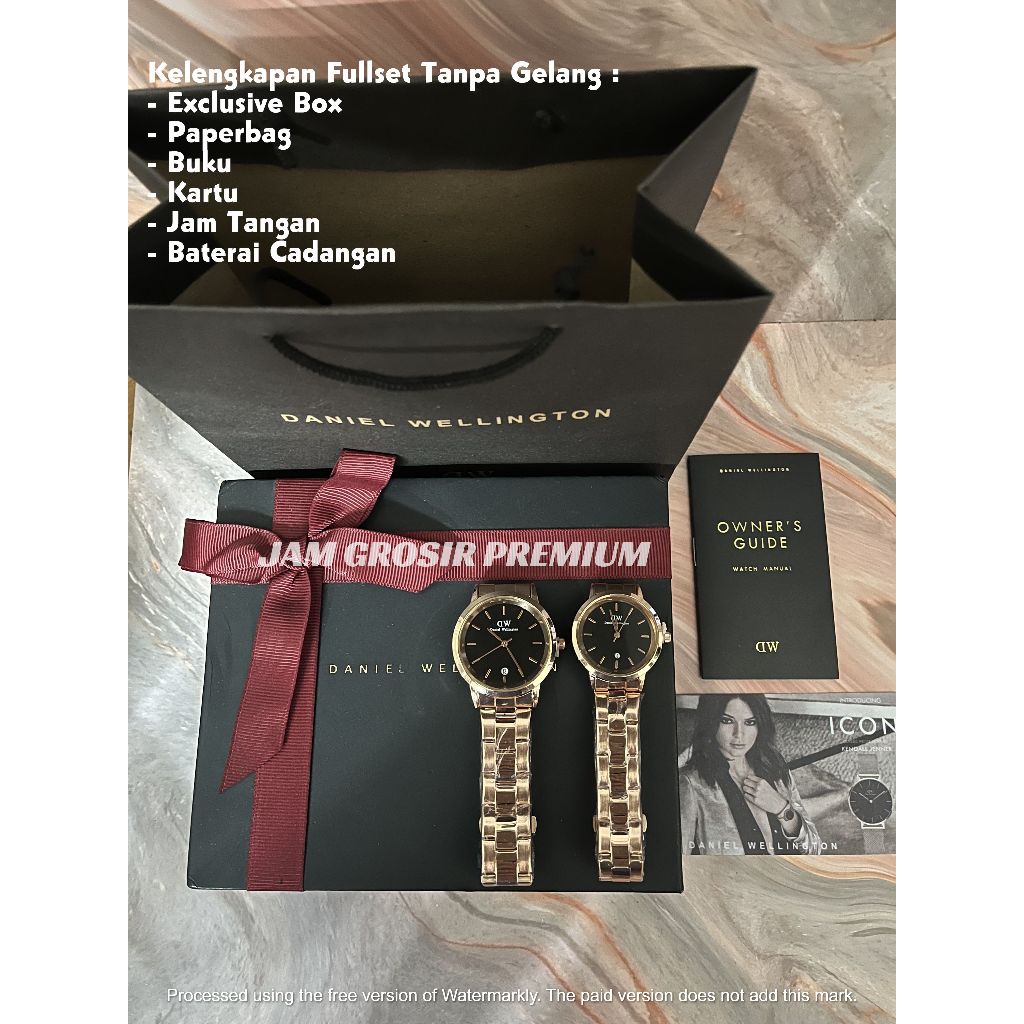 Paket Fullset Box Pita Original Jam Tangan Couple ( Pria / Wanita ) W3203D Rantai Iconic Tanggal Garansi 2 Tahun