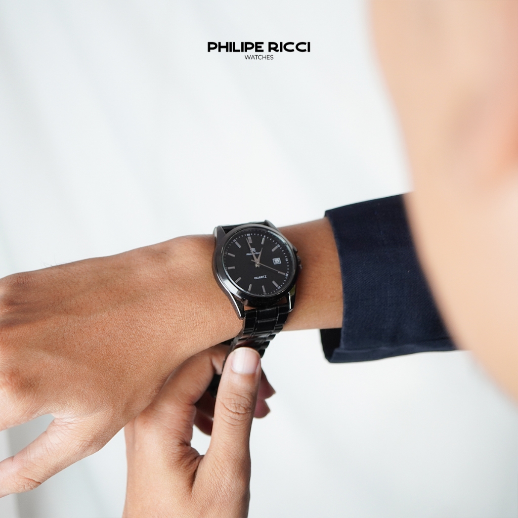 PhiLipe Ricci Jam Tangan Couple Rantai Besi Pria Wanita Terbaru Elegan 7501 Free Box