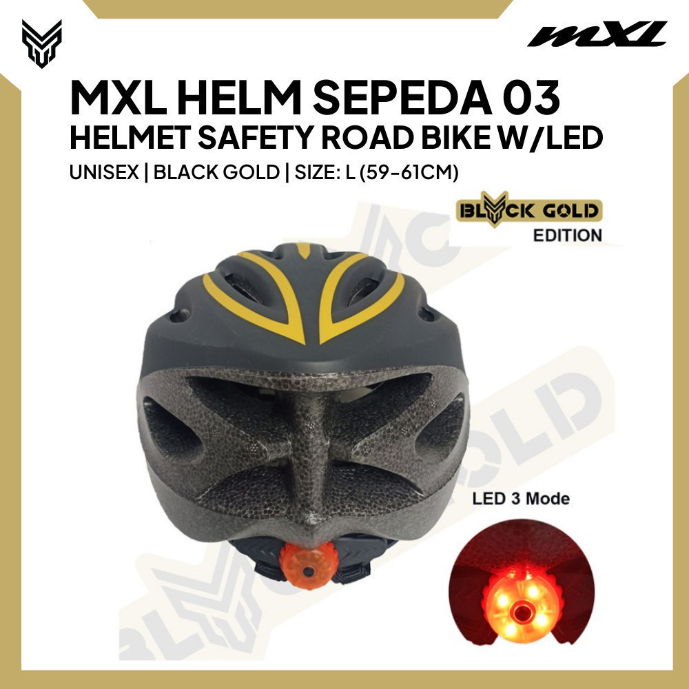 MXL Helm Sepeda dengan LED Bicycle Helmet 03 Black Gold Pelindung Kepala Unisex Cycling