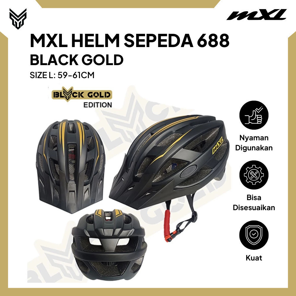 MXL Helm Sepeda 688 Black Gold - Helm Sepeda Dewasa Unisex, Nyaman Digunakan, Kuat