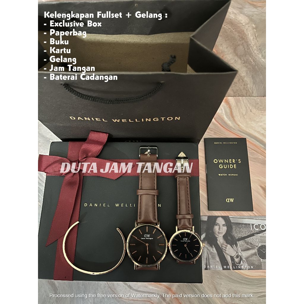 Paket Fullset Jam Tangan Couple Wanita / Pria Kulit Casual Terlaris type WD502 Bisa