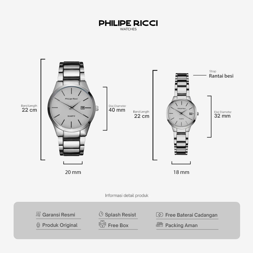 PhiLipe Ricci Jam Tangan Couple Rantai Pria Wanita Simple Terbaru Original 100% 6088C Free Baterai