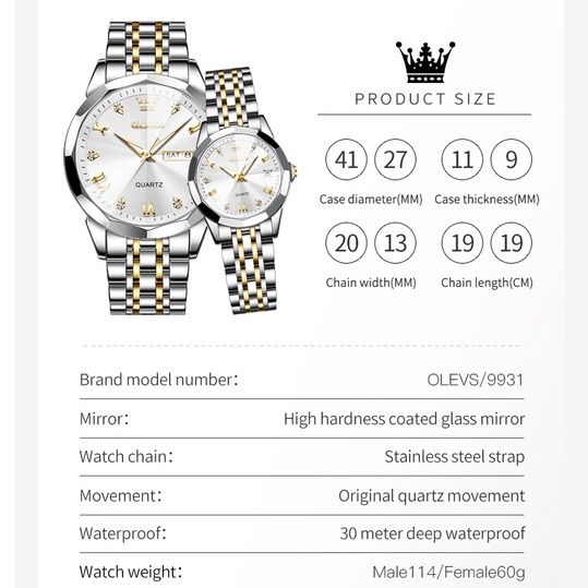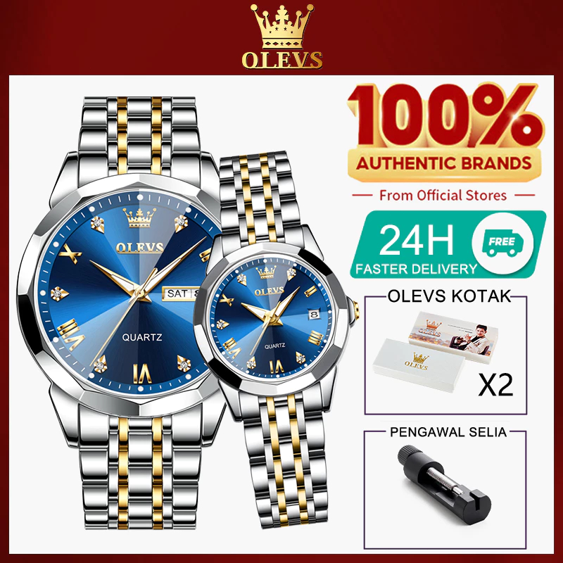 OLEVS Jam Tangan Couple Anti Air Original Stainless Steel Luxury Bercahaya Kalender Quartz Watch 9931