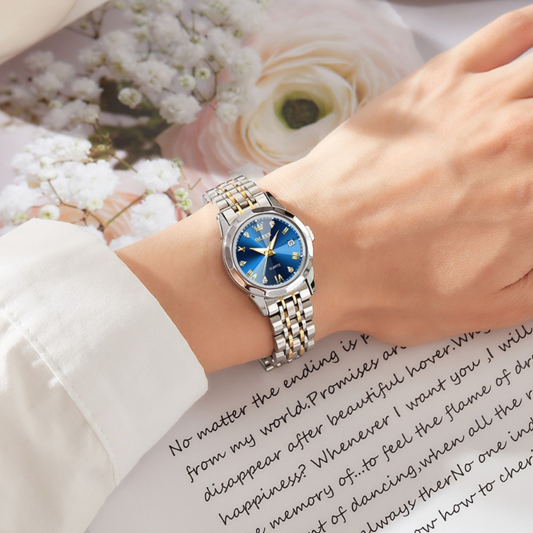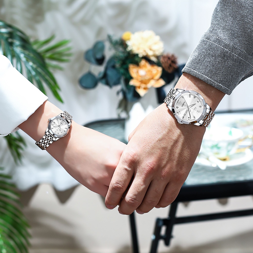 OLEVS Jam Tangan Couple Pasangan Anti Air Original Kalender Bercahaya Luminous Stainless Steel Analog Couple Watch el 99