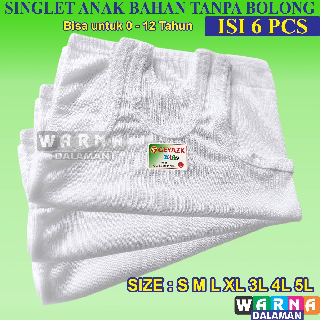 6 Pcs Singlet Anak Warna Putih 0-12 Tahun Tanpa Bolong Kaos Dalam Kutang Anak Laki Dan Perempuan