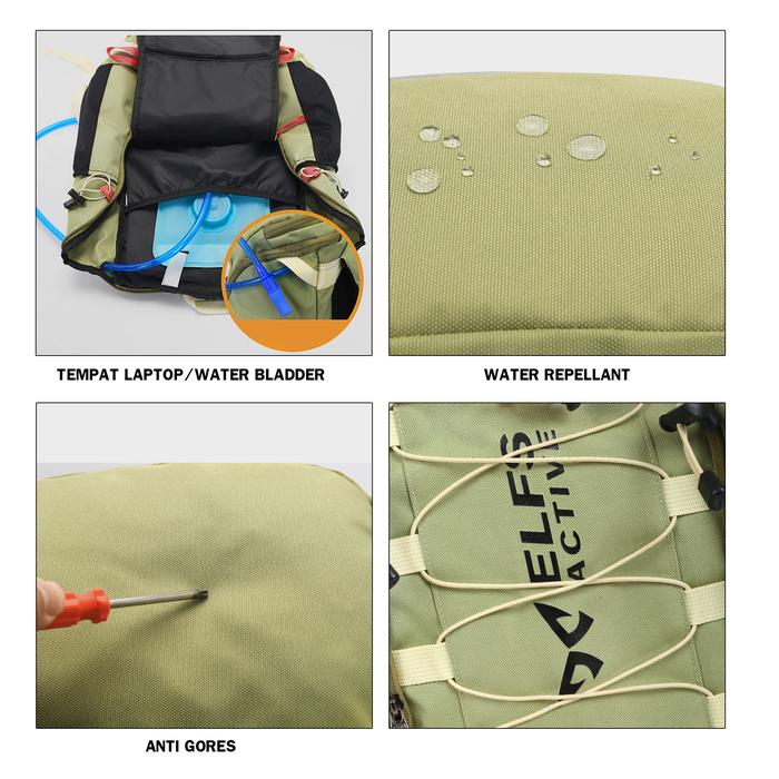 Elfs Actie Tas Ransel Gunung 32L Water Resistant Semi Carrier Outdoor Hiking Bag BATUR - Abu Muda, Tas Saja