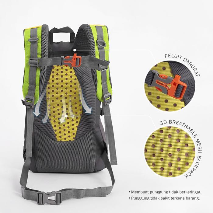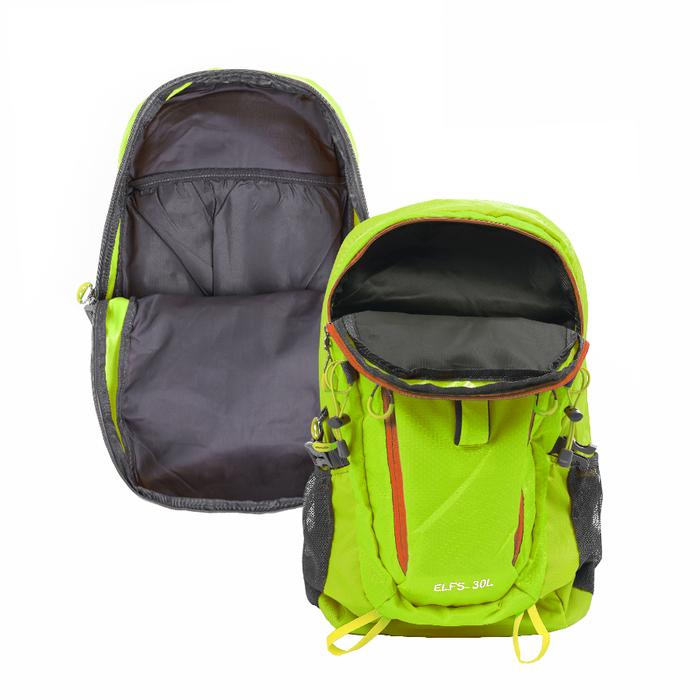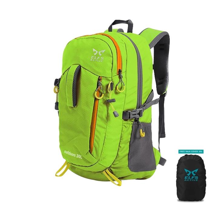 Elfs Active - Tas Ransel Gunung Carrier 30L Tenteng Water Resistant Hiking Bag 3D Mesh - Hitam, Tas Saja