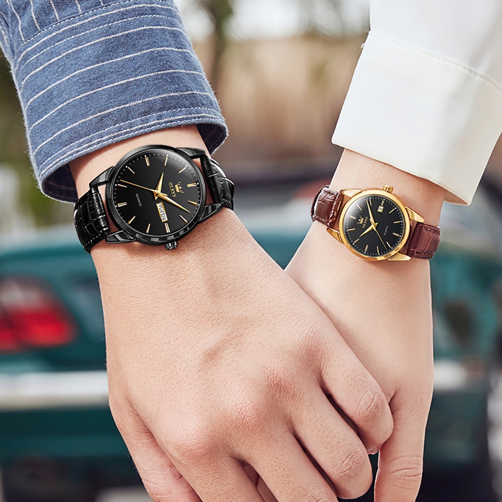 OLEVS Jam Tangan Couple Pasangan Original Anti Air Analog Kulit Terbaru