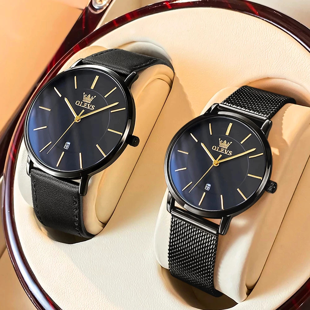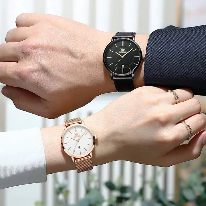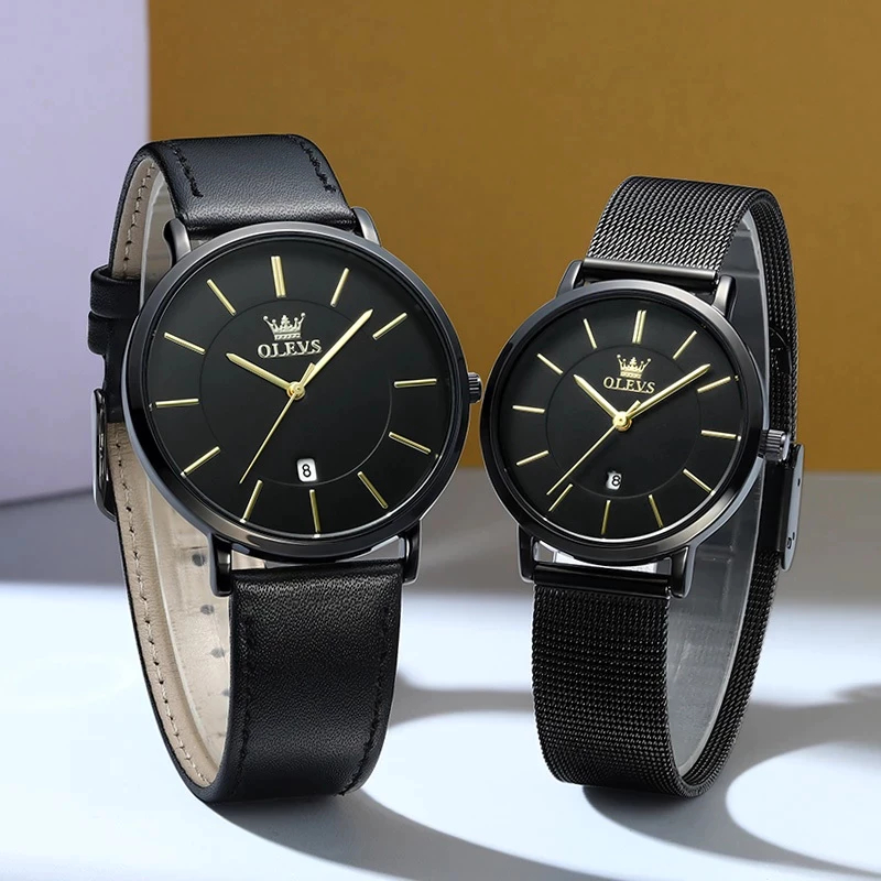 OLEVS Jam Tangan Couple Original Luxury Kalender Kulit Stainless Steel Anti Karat Pasangan Watch