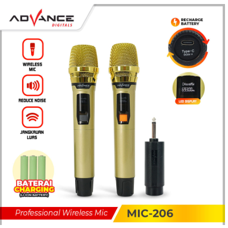 ADVANCE Professional Wireless Microphone MIC-206 Mikrofon Tanpa Kabel Bisa di Charger Mikrofon