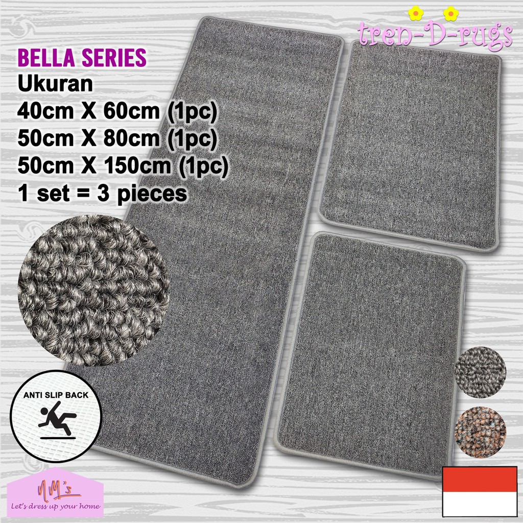 1 Set 3pcs Keset Kaki Tren-D-Rugs Keset Polos Lantai Dapur Panjang Lorong Runner Kitchen Mat Anti Slip Keset Kamar Mandi
