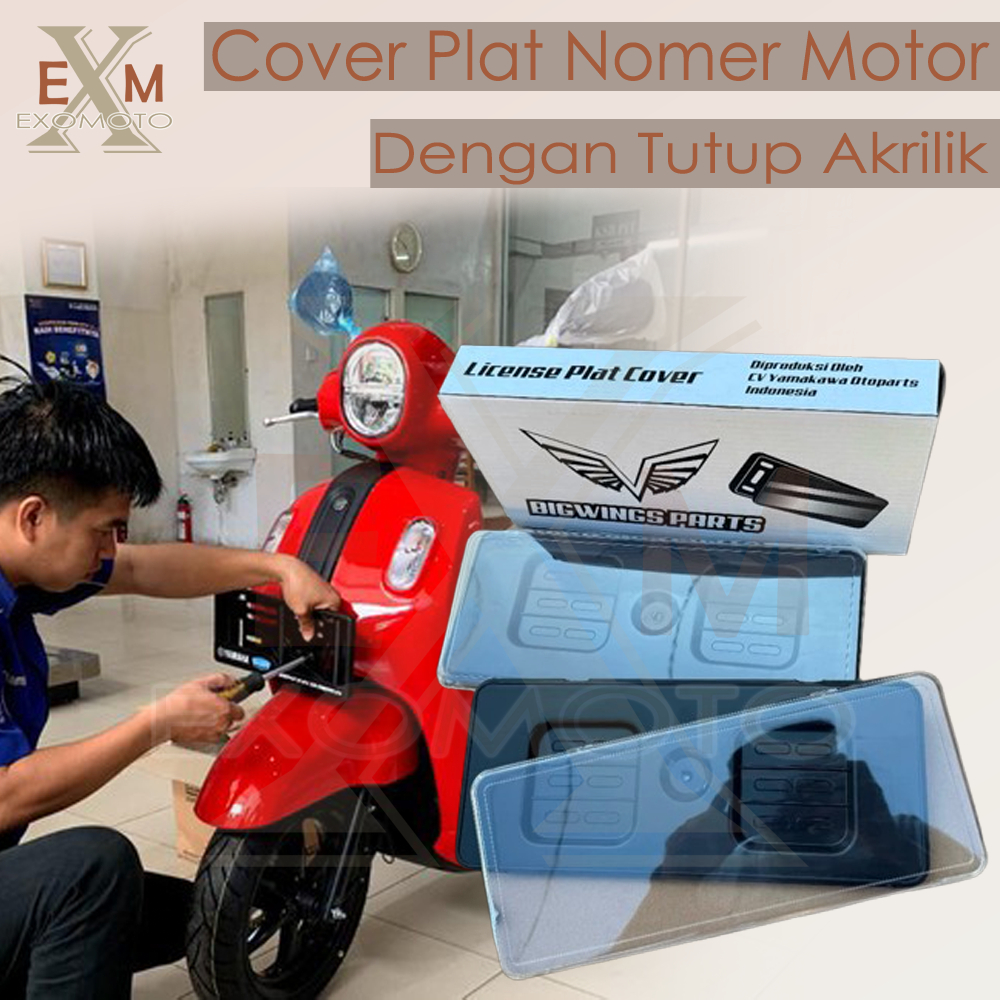 Cover Dudukan Plat Nomor Motor Denga Tutup Akrilik Universal EXOMOTO