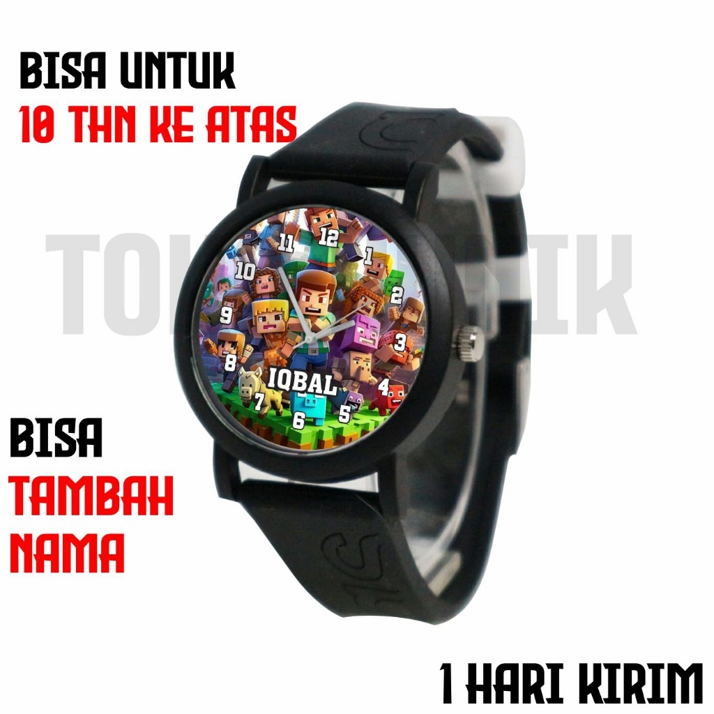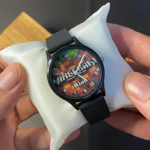 Jam tangan analog laki cowok pria SD TK 4 Tahun custom gambar karakter foto kartun MineCraft untuk kado hadiah ulang ta