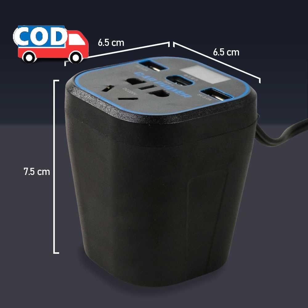 Car Power Inverter Mobil 12V 24V ke AC 220V 150W DC to AC Soket USB Type C LED Display Charger Vacuum Laptop Proteksi Am