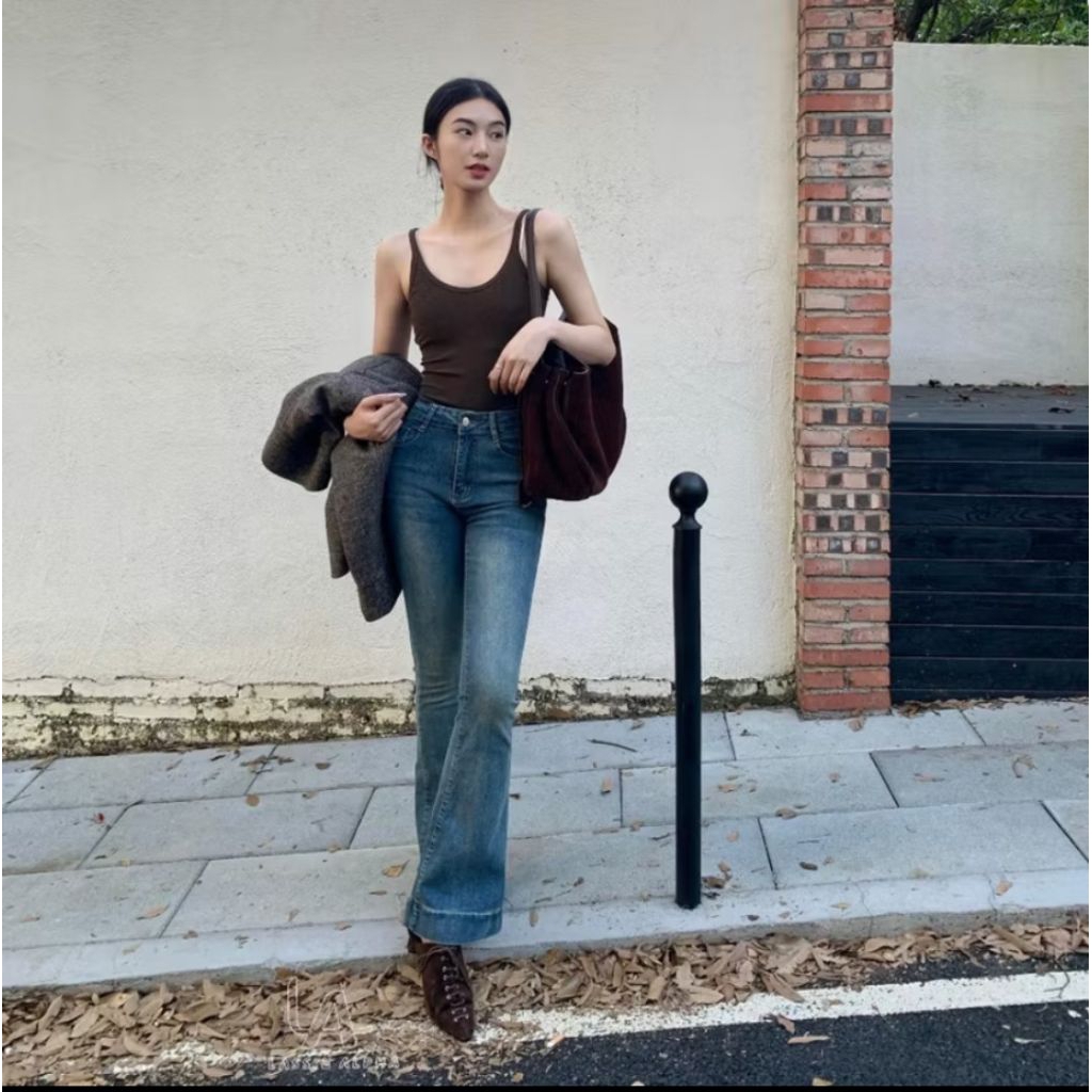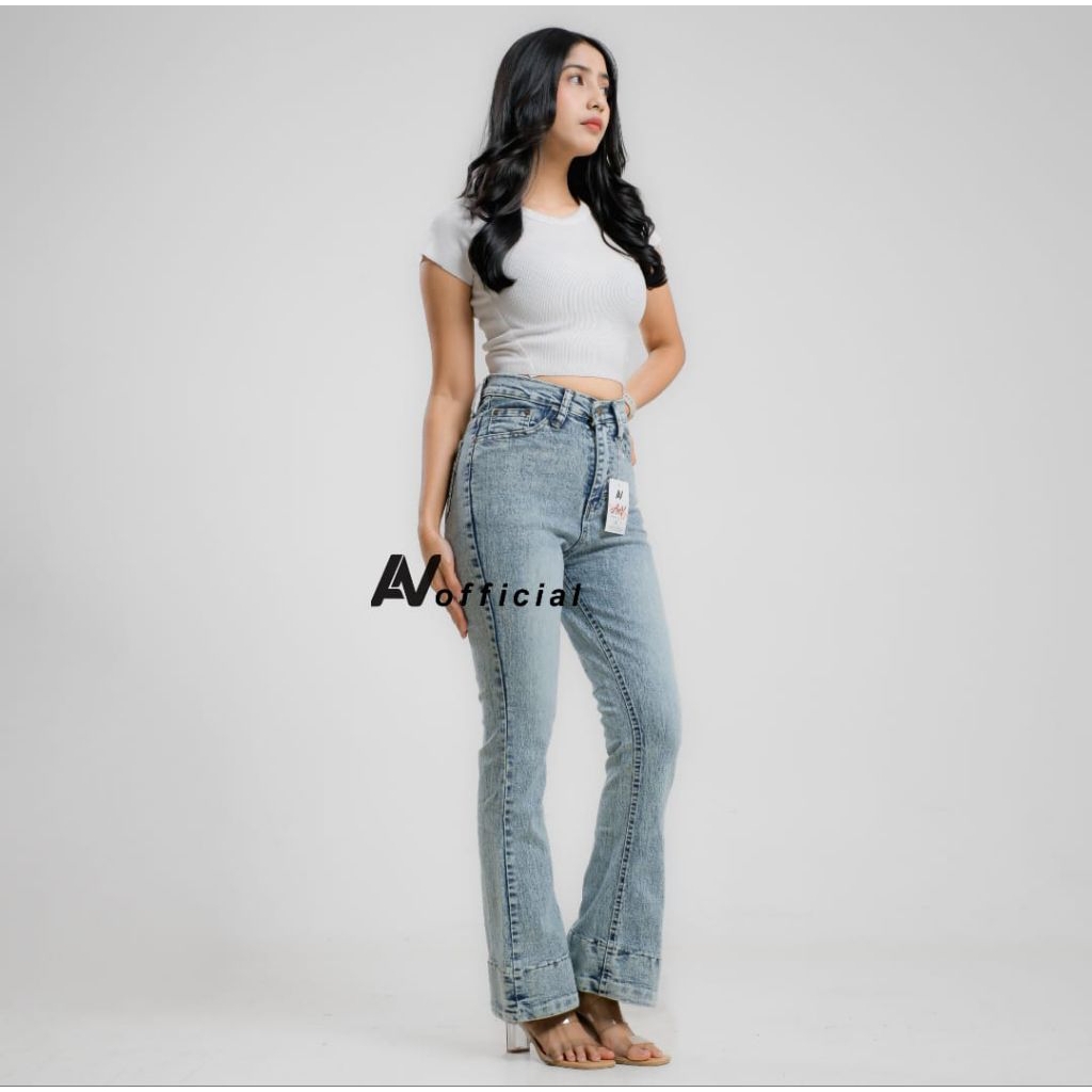 Cutbray jeans wanita - Celana Cutbray Highwaist Warna Light blue Retro Stretchy terbaru