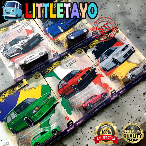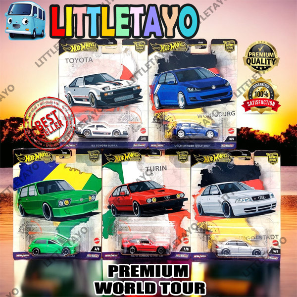 HotWheels Premium World Tour Toyota Supra Volkswagen Golf Brasilia Audi Alfa Romeo