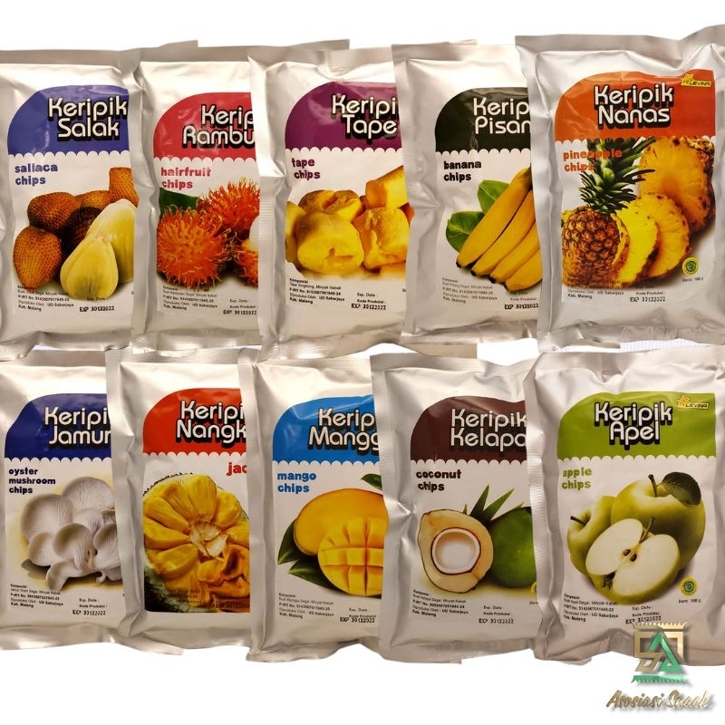 KERIPIK BUAH LEVINA Apel Nangka Salak Mangga Kelapa Rambutan Kemasan 100.gram