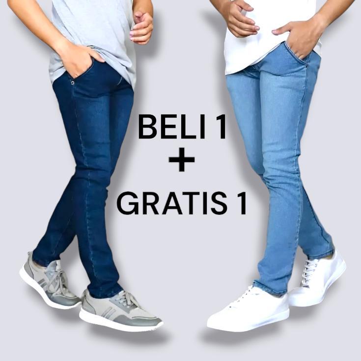 PROMO PAKET HEMAT ISI 2}Beli 1 Gratis 1 Celana Jeans Pria Semi Slim Bahan Melar Street Jeans Cowok