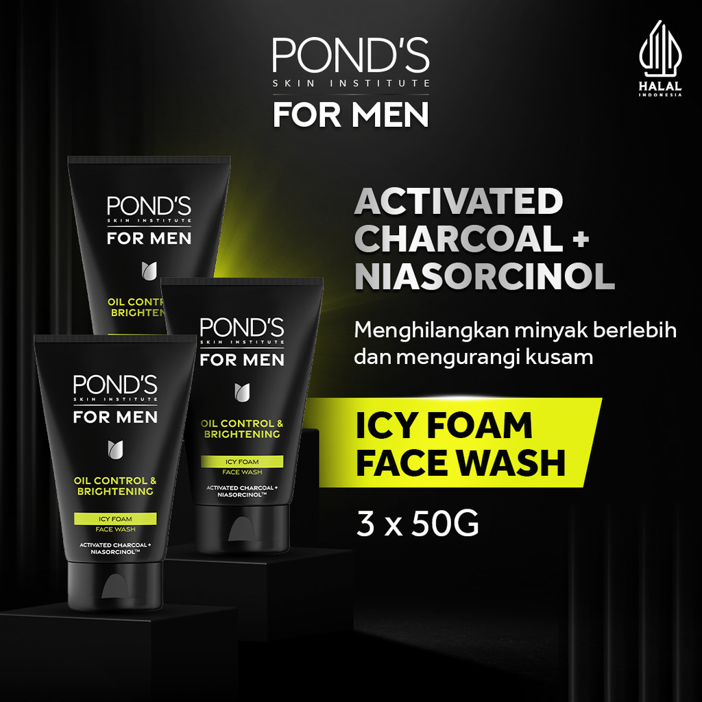 POND’S Skin Institute for Men Oil Control Brightening ICY FOAM 50gFACIAL WASH Pria Melawan Jerawat dan Mengontrol Minyak