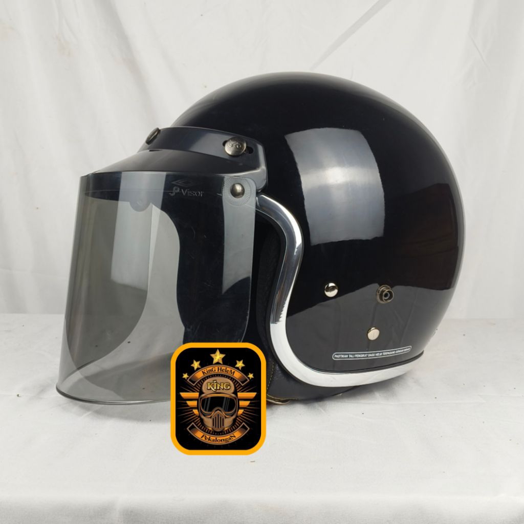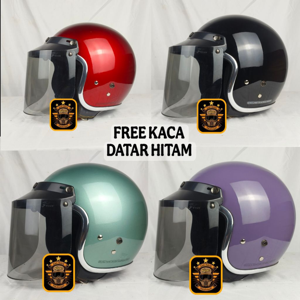 LCHelm Bogo D3W4SA Kaca Datar Hitam SNI Helm Bogo Wanita Pria NO1 helm Bogo polos full leher