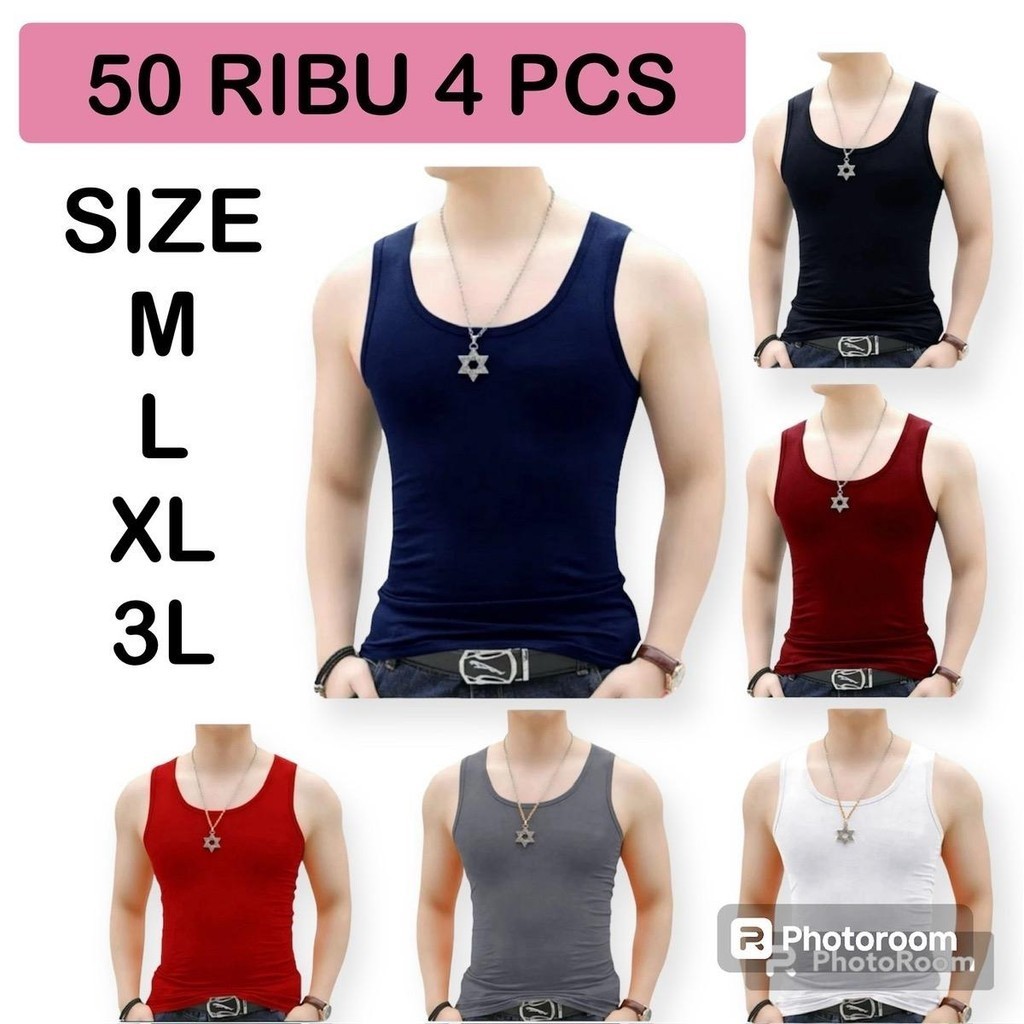 PAKET 4 PCS SINGLET POLOS PRIA DEWASA KAOS DALAM PRIA POLOS TANKTOP PRIA WARNA WARNI PREMIUM