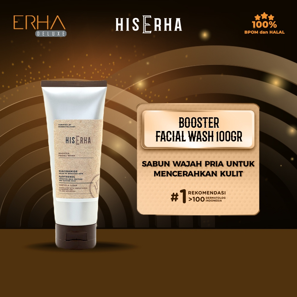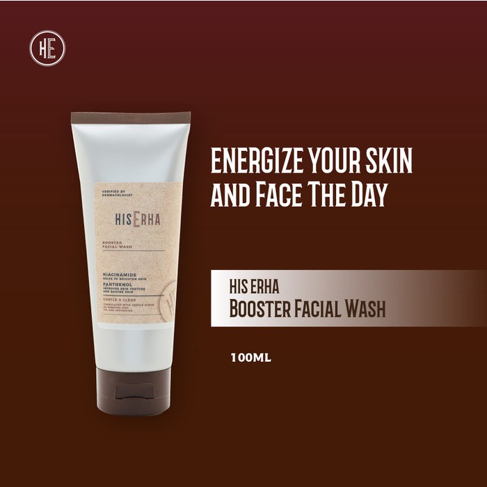 HIS ERHA Booster Facial Wash Sabun Pembersih Muka Pencerah Pria Niacinamide Panthenol 100g