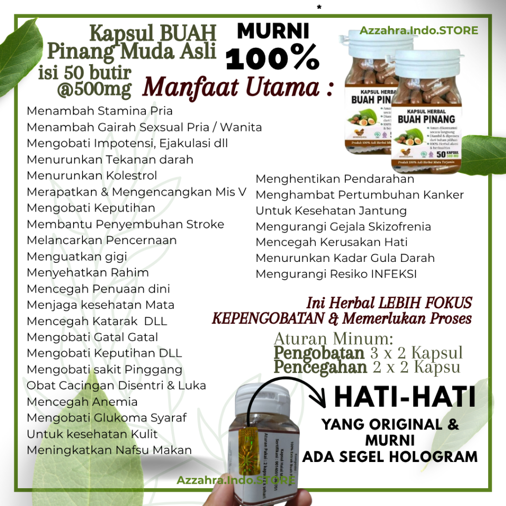 Kapsul Buah Pinang Muda ASLI 100 PERSEN Murni isi 50 btr