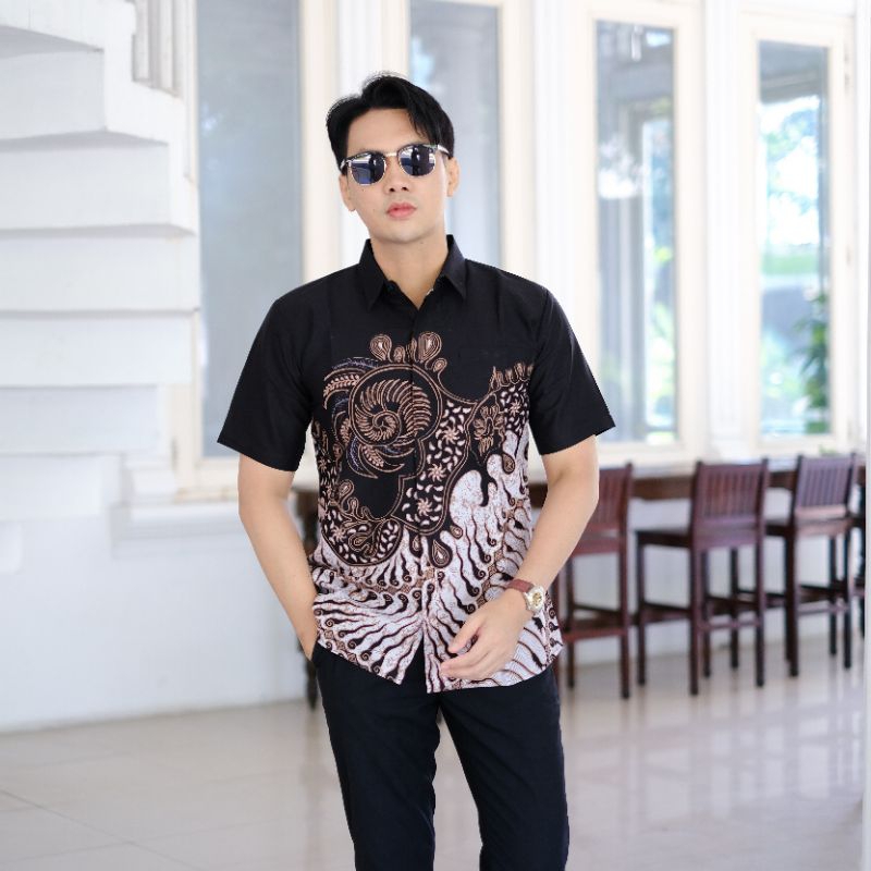 Motif Rangkong Hitam Pendek Kemeja Batik Pria Slimfit Lengan Pendek Baju Batik Pria Hem Batik Pria Jumbo
