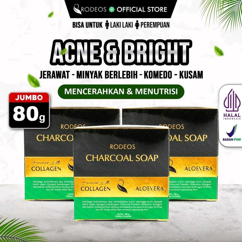 RODEOS ACNE BRIGHT 3 Pcs Charcoal Soap Sabun Cuci Muka Pria WanitaSabun Pemutih Anti Acne Sabun JerawatBruntusanKomedo K